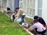 | よく晴れた一日、大洗町農林水産課と夕日の郷松川の皆さんのお手を借りて、5学年の児童が田植えを体験しました。田んぼの中に足を踏み入れる瞬間、苗を差し込む瞬間、その全てが初体験でした。泥とふれあうよい体験活動ができました | ||||