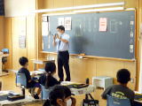 | 原子力事故に対応した避難訓練を行いました。児童が校庭で遊んでいたときに事故が起こった設定で、緊急放送を聴き校内に避難しました。手を洗う、服を着替える、肌が出ないようにする等のことを実際に行い、その後、原子力機構大洗研究所の職員の方のお話を聴きました。クイズなどを交え放射線や放射性物質の性質などについてお話いただきました。難しい内容だったにもかかわらず、低学年の児童も静かにお話を聴くことが出来ました。 | ||||