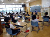 | 来年度入学してくる予定の祝町幼稚園の園児たちが見学に来てくれました。1、2年生の授業の様子や図書室などの教室環境を見て、とても楽しそうでした。また、見られている1年生のピンと伸びた手の挙げ方からは、意欲といいとこ見せようとの張り切りぶりが伺え、、見ていて大変微笑ましく思いました。 | ||||