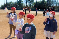 | 1月30日(火) 1年生が生活科の学習で風車を作り、外で元気に楽しく遊びました。 |