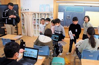 | 12月14日(木)「心ぽかぽか言葉」放送 クラブ活動 パソコンクラブでは、茨城工業高等専門学校の協力のもとで「カードでプログラミング」に挑戦しました。 |