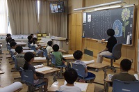| 5月10日(水) 小中合同授業研究会 よりよい授業づくりのために職員も学び合っています | |||